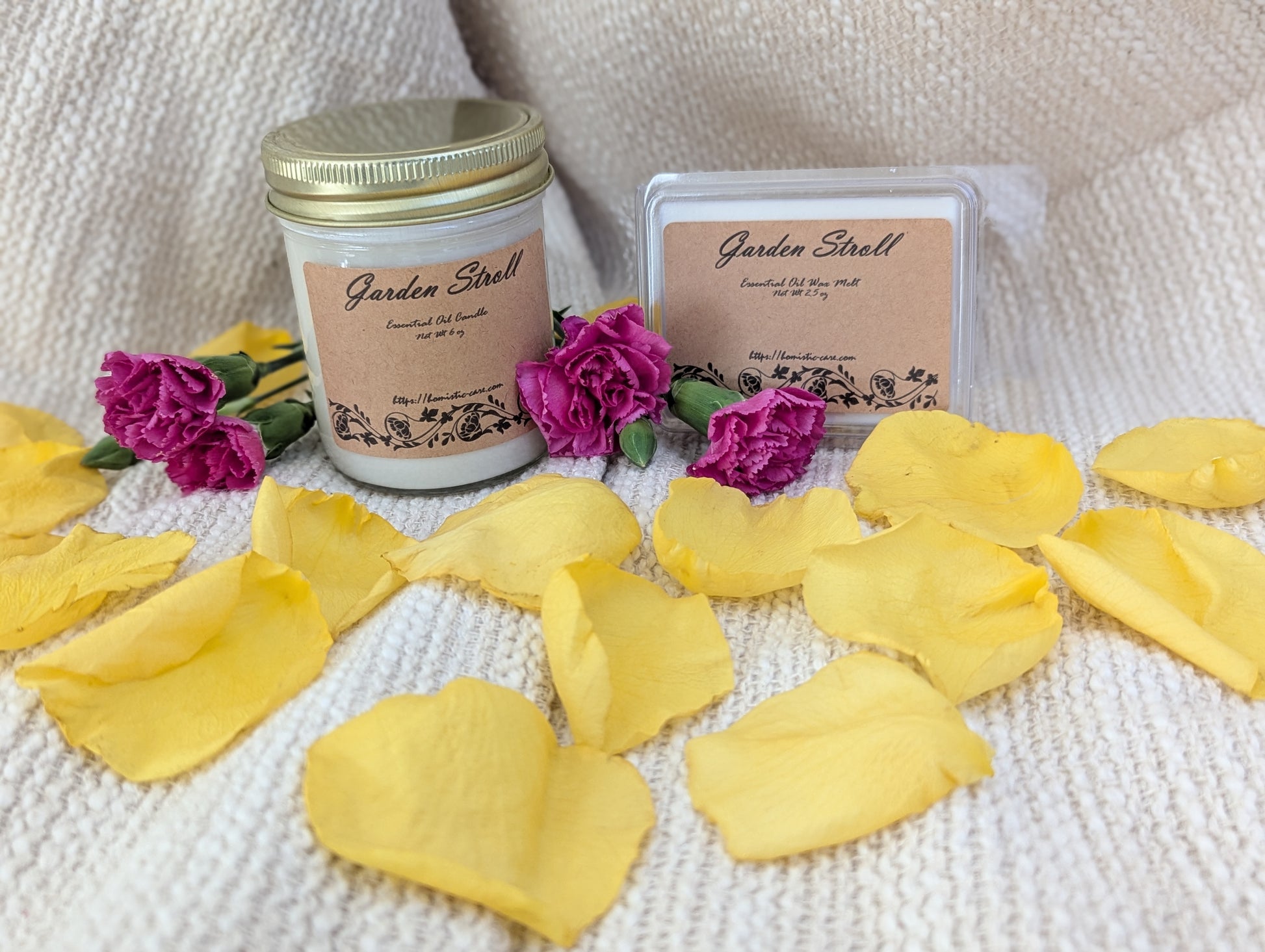 Enjoy this little slice of sunshine in a candle! This all-natural essential oil candle gives hints of jasmine and rose, creating a calm and relaxing environment.